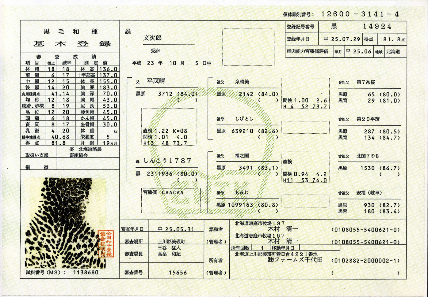 | 文次郎 | CH黒-5 | 平茂晴 | 福之国 | 安福(岐阜) | 2011.10.05 | 12600-3141-4 |