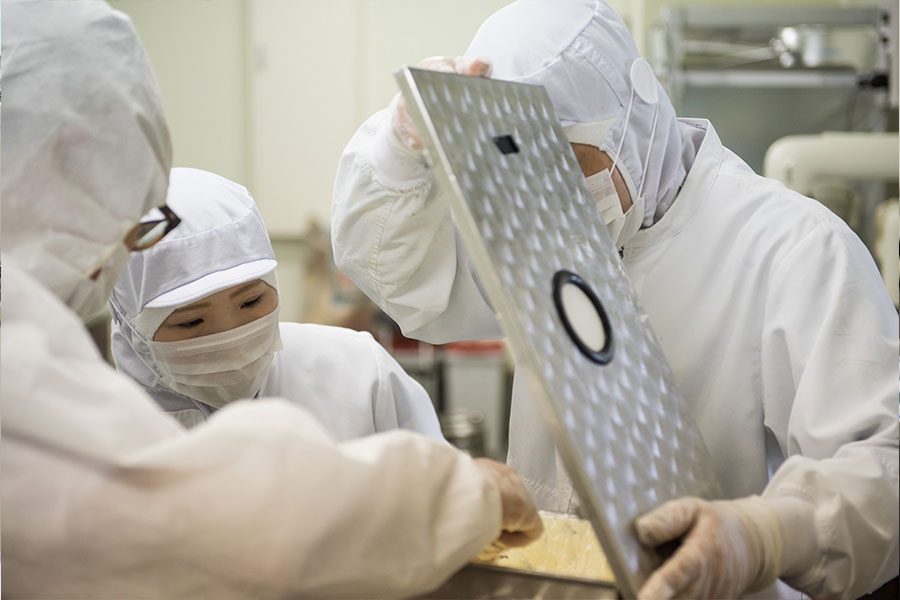 安全・安心な乳製品を季節を問わず安定して提供できるように、原料の衛生管理や品質調査、基準に基づいた作業の実施や製造設備の整備・管理、製品検査体制の充実などに努めています。 各製造工程ではそこで起こり得るリスク(微生物汚染や異物混入など)を想定し、それを予防するために設定した具体的な製造手順に基づいた作業を行っています。 また、従業員は「一般的衛生管理プログラム」に従い、自らの衛生管理・体調管理、施設や設備の清掃や保守管理、原材料や製品の衛生的な取扱いなどに努めています。 おいしいことはもちろん、いつでも安心して召し上がっていただける乳製品を提供します。
